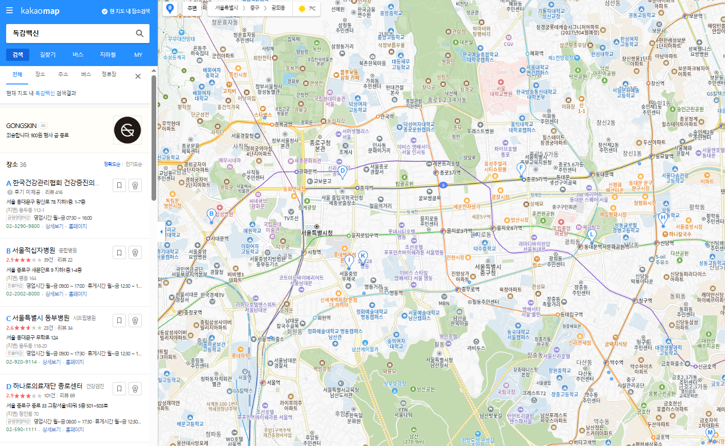 3. 카카오맵 + "독감 백신" 검색