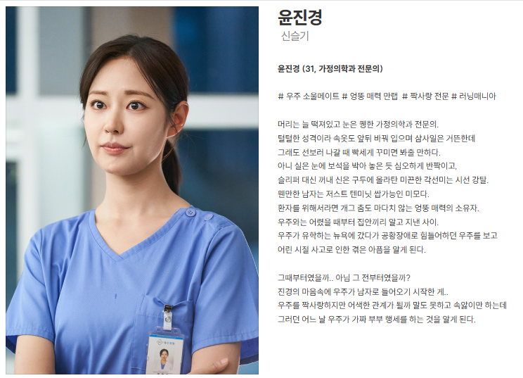 - 현재는 가정의학과 전문의이자 우주의 짝사랑 상대