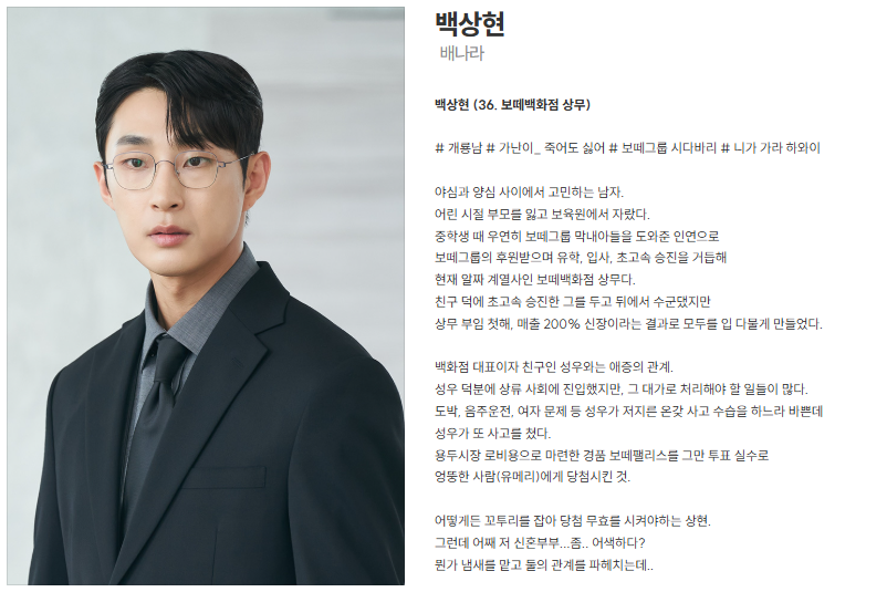 - 계약 결혼을 의심하며 갈등을 유발하는 캐릭터