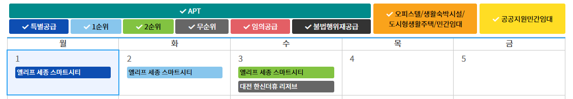 2. 지방 청약 일정 (세종, 대전, 충북, 충남, 울산, 부산, 전남, 경북, 제주)