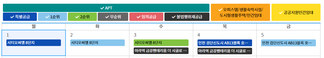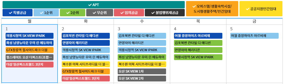 1. 수도권 청약 일정 (서울, 경기, 인천)