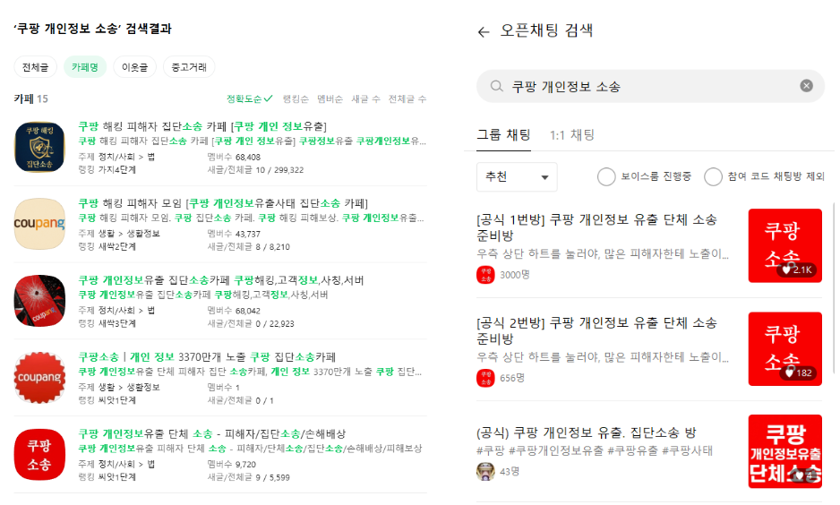 - 네이버에서 "쿠팡 개인정보 유출 소송 카페" 검색