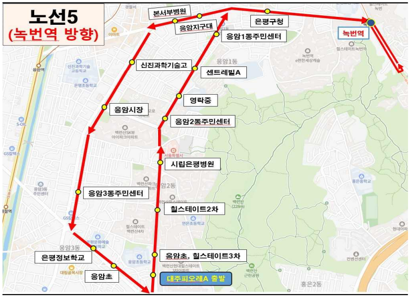 🔹 노선 5 (대주피오레힐 ↔ 은평성모병원 ↔ 응암역)