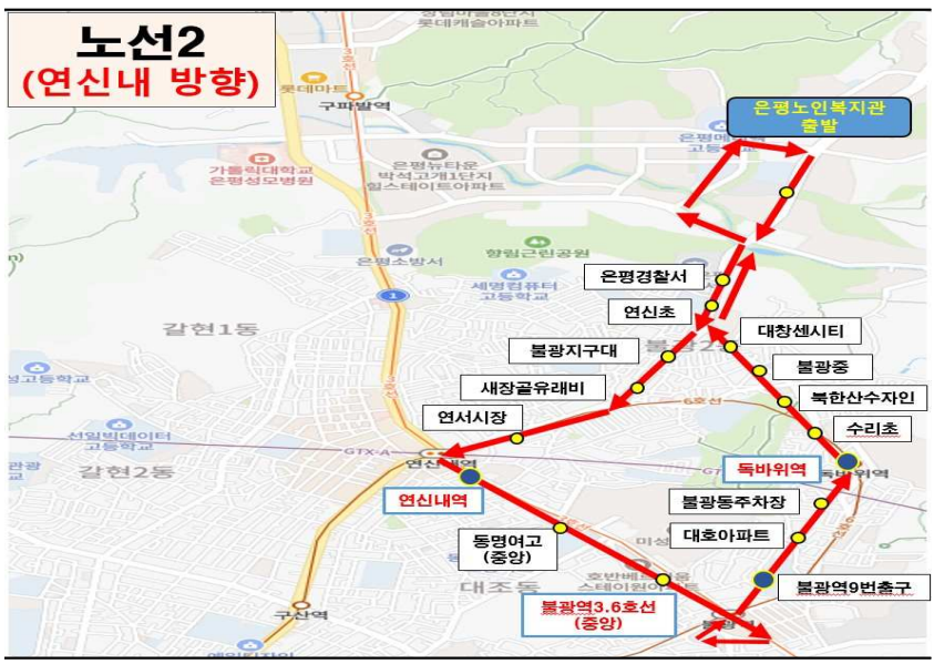 🔹 노선 2 (은평노인복지관 ↔ 연신내역 ↔ 독바위역)