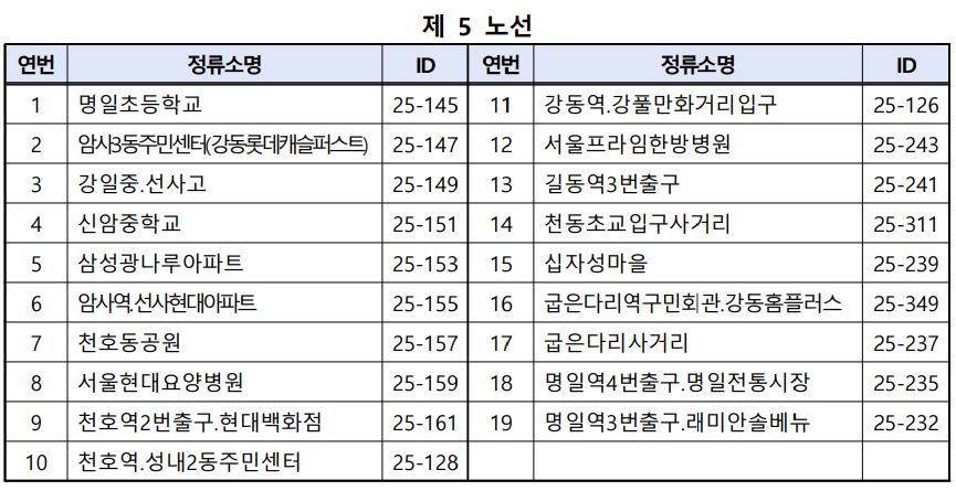 🧾 정류소 ID: 25-145, 25-147, 25-161 등