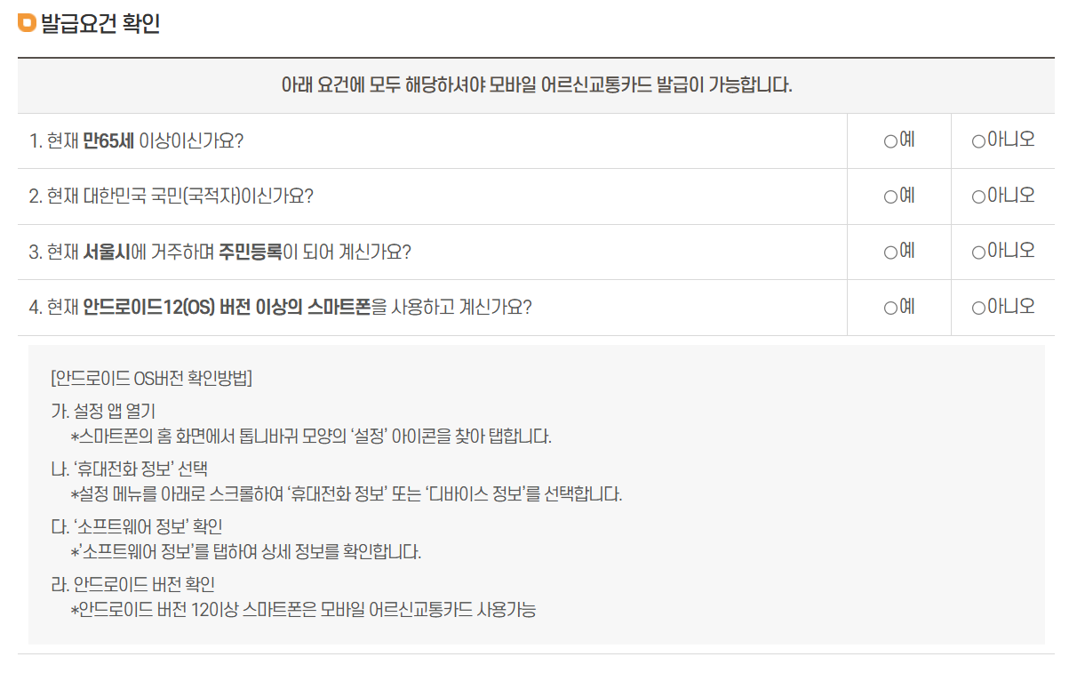 | 모바일 어르신 교통카드 문의 | 티머니 고객센터 ☎ 1644-0088 |