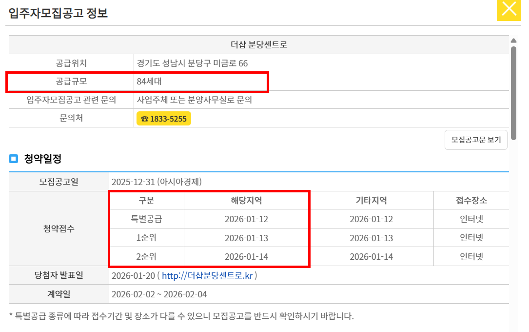 분당센트로는 총 44세대가 특별공급으로 배정돼 있으며, 일반공급은 40세대입니다. 조건에 해당한다면 특별공급으로 먼저 도전해보는 것이 유리합니다.